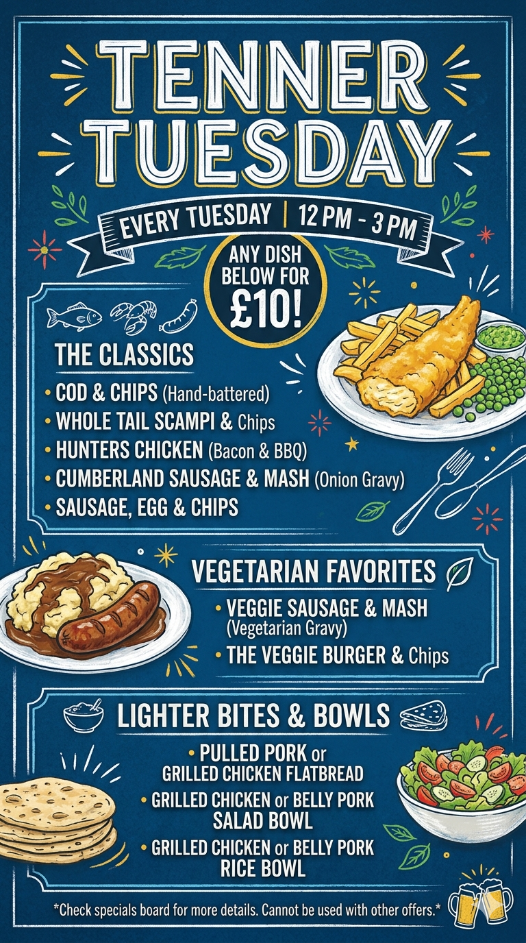 Tenner Tuesday12 till 3 FOR ENQUIRIES AND BOOKINGS PLEASE CLICK HERE FOR ENQUIRIES AND BOOKINGS PLEASE CLICK HERE